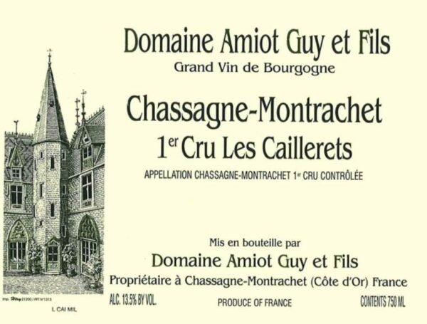 White Wine by Guy Amiot from Burgundy, France – regions. The Chassagne-Montrachet 1er Les Caillerets is an iconic wine. Neighboring the Amiot family’s own house, this plot was purchased when the Domaine was founded by Arsene Amiot. Partly replanted 30 years ago, it still incarnates the Chassagne white wines thanks to a great location (terroir): high in the Chassagne hill, on a dominantly limestony soil, facing the South-East. Les Caillerets wines bear a rich aromatic potential with powerful exotic fruit flavors and an elegant mineral line.